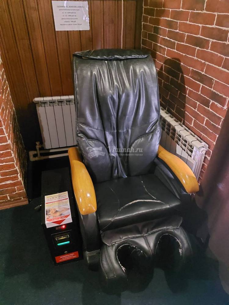 Для комфортного отдыха установлен кондиционер, массажное кресло, мягкая кожаная мебель и большой банкетный стол из массива дерева.